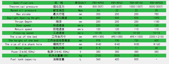 單柱液壓機系列技術參數: